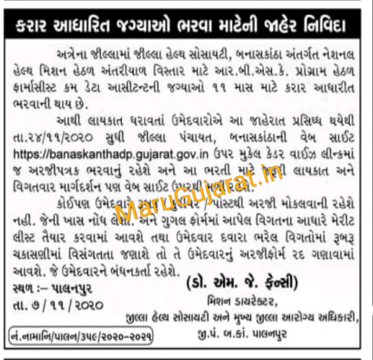 District Health Society, Banaskantha Recruitment for Pharmacist cum Data Analyst Post 2020