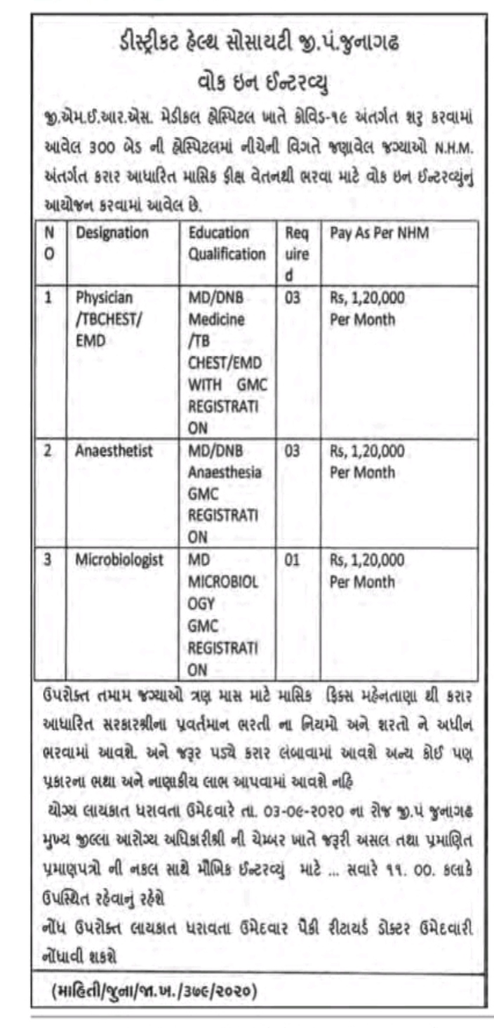 District Health Society, Junagadh has published an Advertisement for the below-mentioned Posts. Eligible Candidates advised to refer to the official advertisement and apply this post. You can find other details like age limit, educational qualification, selection process, application fee, and how to apply are given below. Keep checking Govtbharti.info regularly to get the latest updates.