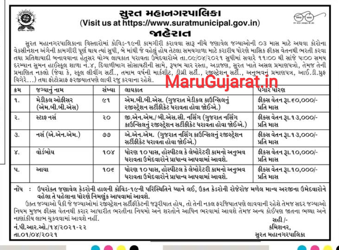 Surat Municipal Corporation (SMC) has published an Advertisement for the below-mentioned Posts. Eligible Candidates advised to refer to the official advertisement and apply for this post. You can find other details like age limit, educational qualification, selection process, application fee, and how to apply are given below. Keep checking govtbharti.info regularly to get the latest updates.