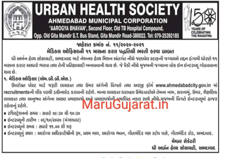Urban Health Society (AMC) has published an Advertisement for the below-mentioned Posts. Eligible Candidates advised to refer to the official advertisement and apply this post. You can find other details like age limit, educational qualification, selection process, application fee, and how to apply are given below. Keep checking GovtBharti.info regularly to get the latest updates.